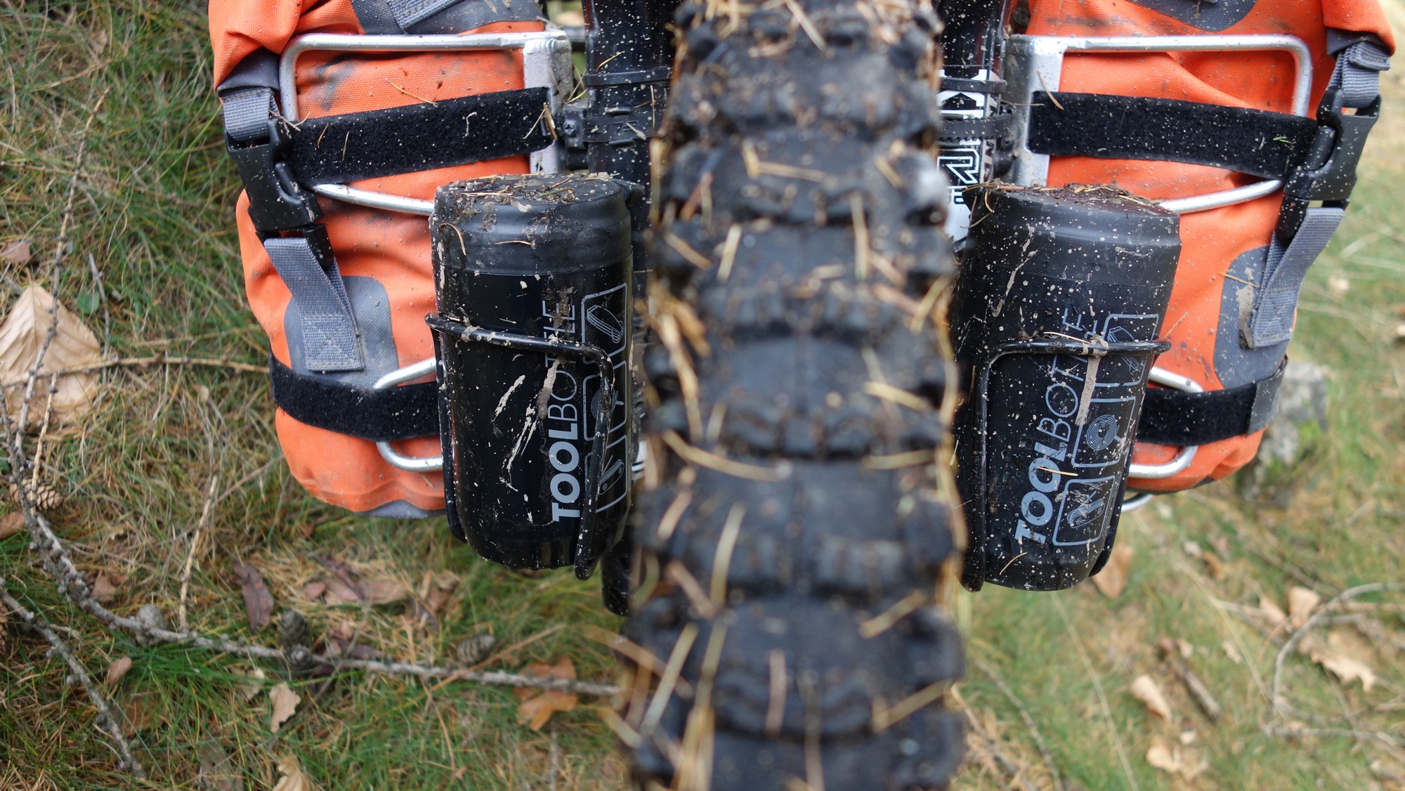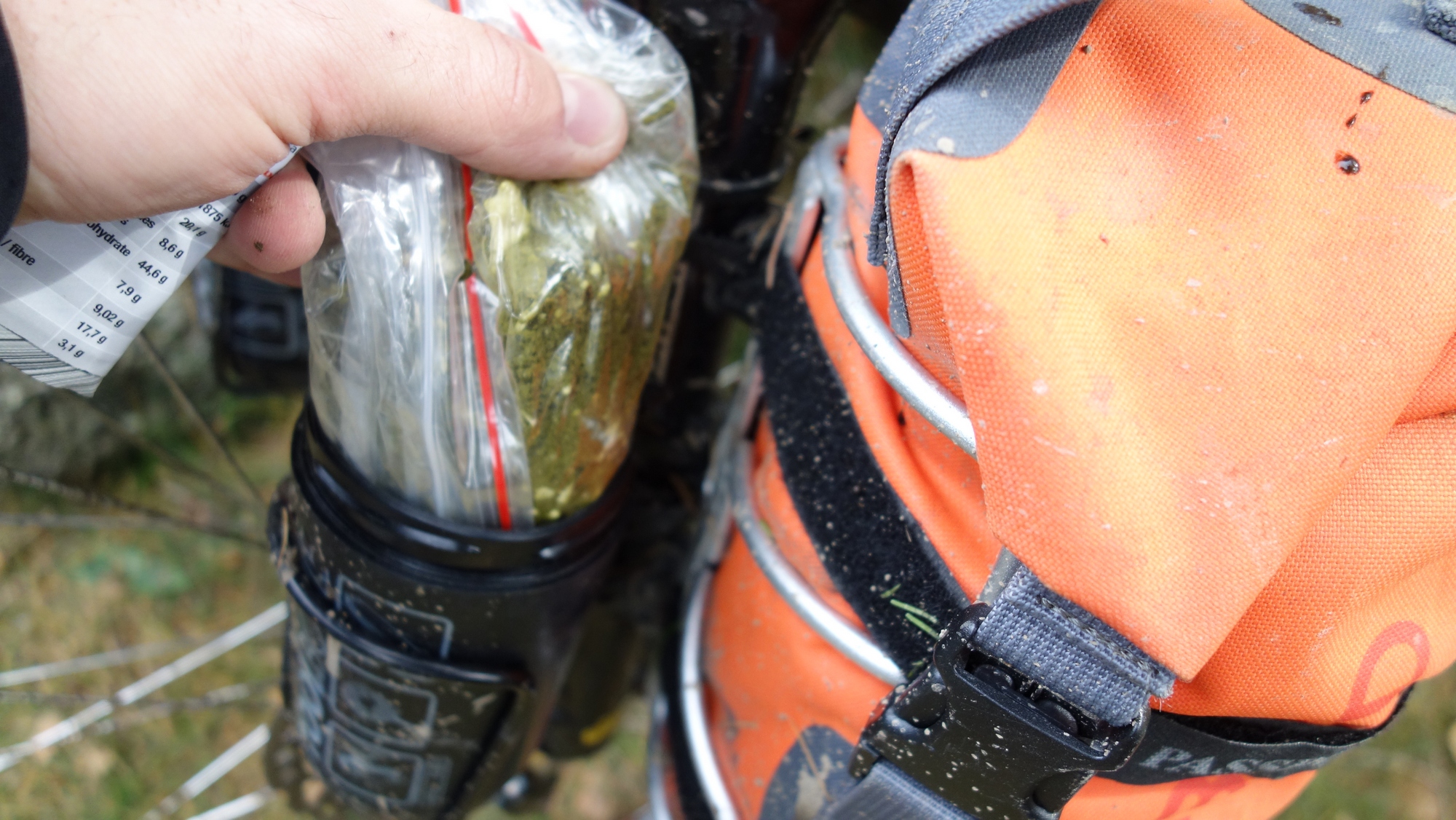 Osobiście pojemniki zaadoptowałem na potrzeby przewożenia drobiazgów, które nie zmieściły się do dwóch worków 5 litrowych. Pakując się na jednodniowy wypad w Rudawy Janowickie (pasmo górskie położone na granicy Sudetów Zachodnich i Środkowych) stwierdziłem, że mogę spakować się do dwóch 5 litrowych worków (statyw powędrował do wąskiej torby podpiętej pod rurką), rezygnując z torby podsiodłowej, która na bardzo stromych zjazdach (np. zjazd ze Skalnika niebieskim szlakiem pieszym) mogłaby stanowić przeszkodę w balansowaniu ciałem. Do worków zapakowałem garnek do gotowania wody, kartusz z gazem, palnik, spodnie przeciwdeszczowe oraz kurtkę, czołówkę, pompkę, klucze i części zapasowe oraz kilka innych drobiazgów. Zabrakło mi natomiast miejsca na jedzenie liofilizowane i batoniki. Wówczas przypomniałem sobie o 500 mililitrowym pojemniku na narzędzia, który niegdyś kupiłem i rzadko wykorzystywałem. Szybko dokupiłem jeszcze jeden i zapakowałem do obydwu: dwa dania liofilizowane przesypane do woreczków strunowych, aby zajmowały mniej miejsca, zwinięte opakowania po jedzeniu liofilizowanym, aby w nich rozrobić jedzenie, dwa snickersy, scyzoryk i zapalniczkę. Pojemniki założyłem na przedni widelec w miejscu w którym często wożę dwa dodatkowe bidony.